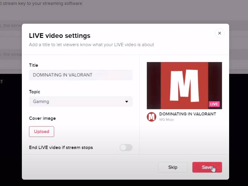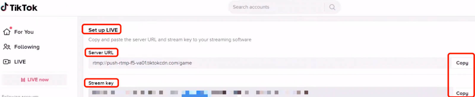 Крок 1. Відкрийте TikTok на своєму комп'ютері та знайдіть Ключ потоку та URL-адресу сервера на панелі управління TikTok.