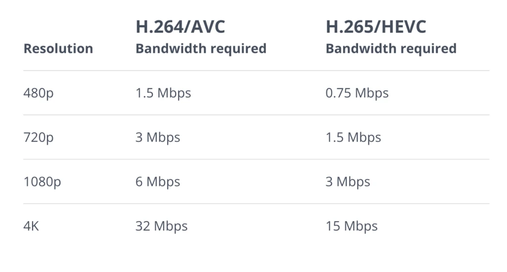 - Нижче вимоги до пропускної здатності: H.265 потребує менше пропускної здатності, ніж H.264, для передачі відео тієї ж якості. Це робить його ідеальним для відеострімінгу через Інтернет.