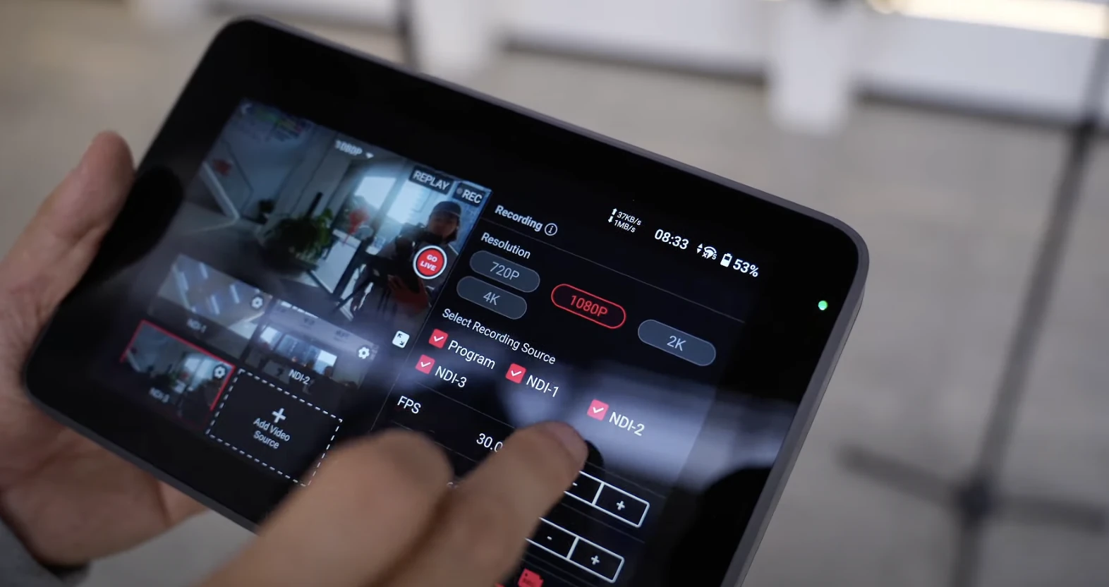 Усі три камери тепер підключені, та користувачі можуть незалежно записувати кожне джерело NDI за допомогою функції запису ISO та перемикатися між ними під час прямого ефіру.