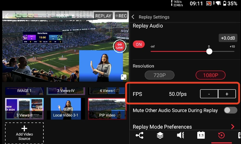 Однією з видатних функцій в цьому оновленні є гнучкість у виборі частоти кадрів повтору. Тепер у вас є можливість налаштувати частоту кадрів повтору відповідно до вашого ефіру, додані 25 та 50 кадрів на секунду. Це важливо для підтримання одного формату протягом усього стрімінгу, що важливо в регіонах з системою PAL.