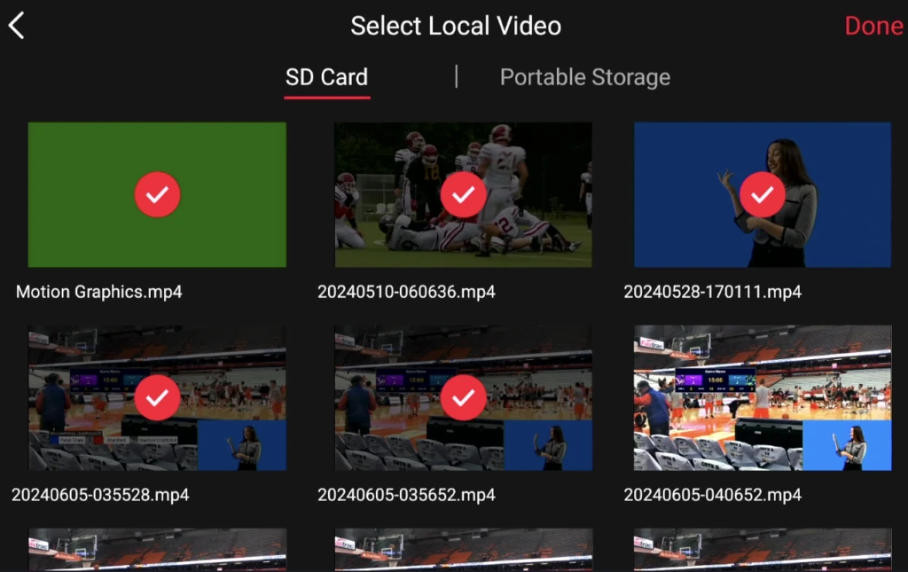 Додавання до 5 локальних відео одночасно: